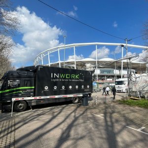 Bevor die bestellte Ware in das modernisierte Stadion transportiert werden konnte, musste sie aufgrund von Bauverzug kurze Zeit in INWORKs Warehouse zwischengelagert werden.