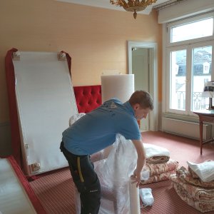 Das Brenners Projekt wird firmenübergreifend von INWORK, REMBOLD und INMOVE Mitarbeitern betreut. Das Team räumte hierfür auf fünf Etagen einen, von Hand des Hotel-Managements ausgesuchten, Teil des wertvollen Interieurs aus dem Gebäude.